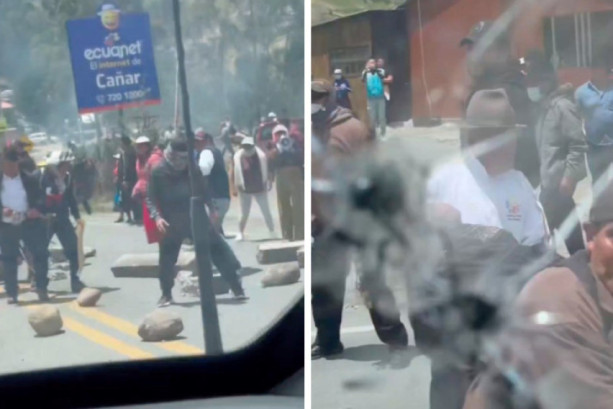 Автомобилот на еквадорскиот претседател Даниел Нобоа бил опкружен од околу 500 луѓе кога тој пристигнал на настан во покраината Канар, врз автомобилот биле фрлани камења и биле пронајдени траги од оштетување од куршуми, изјави министерката за животна средина и енергетика Инес Манзано.