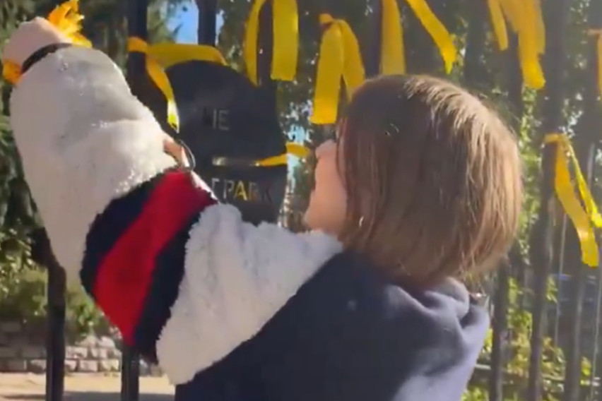 [ВИДЕО] Во Лондон, жена ги сечеше лентите поставени во спомен на израелските заложници, минувач: Одвратна си