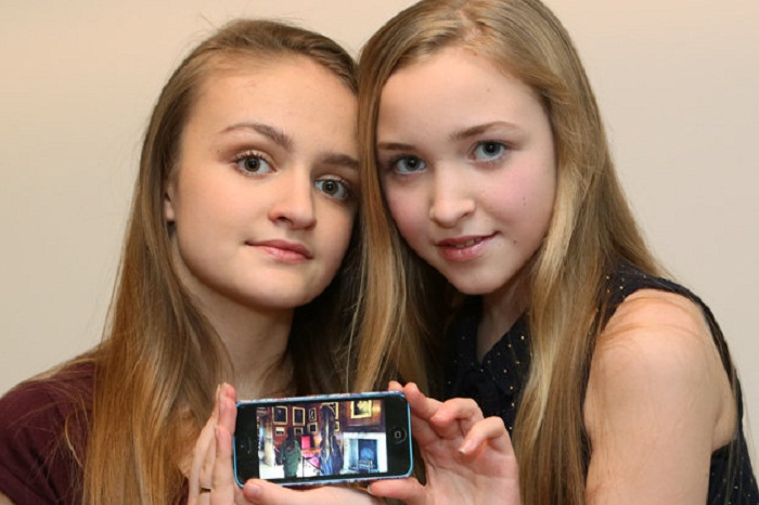 Имено, Холи Хемпшир (12) сакала со својот ајфон да ја фотографира својата роднина Брук Мекгри (12) додека го посетувале замокот од 16 век.