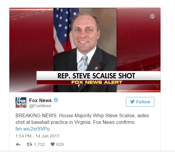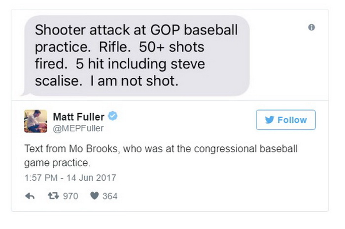 Околу 7:30 изутринава, напаѓач започнал да пука во Александрија, Вирџинија, за време на безбол тренинг во пресрет на годишната конгресна безбол игра, која е закажана за четвртокот вечер.