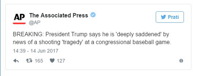 Напаѓачот започнал да пука денес во Александрија, град во близина на Вашингтон во САД, на сред тренинг за безбол во кој биле вклучени и американски политичари.