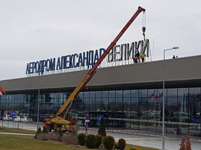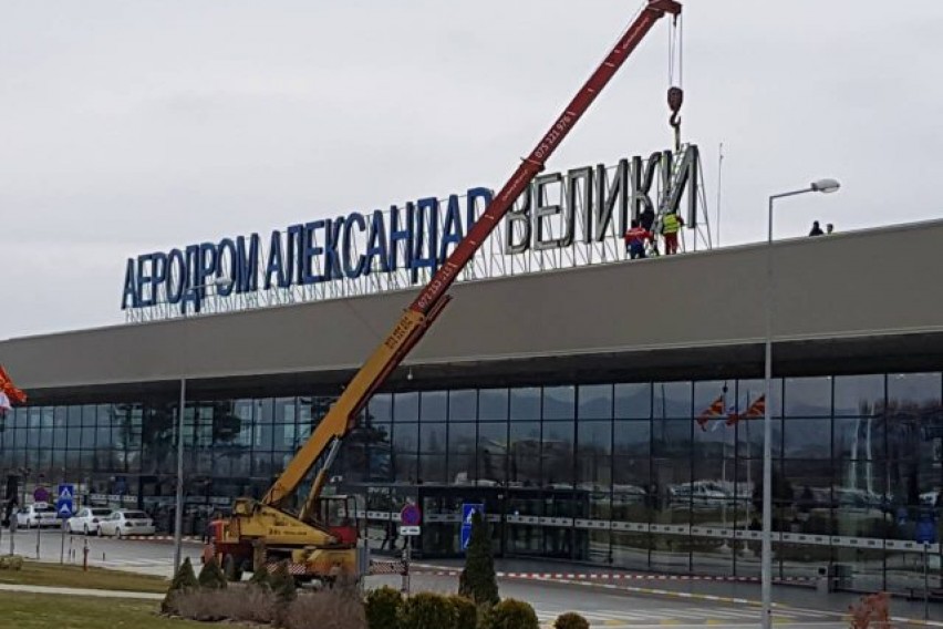 Почна отстранувањето на буквите на зградата на терминалот на доскорешниот аередром „Александар Велики“.
