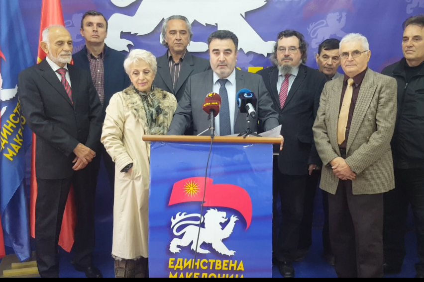 Од партијата Единствена Македонија денеска преку соопштение информираат дека со тоа што ВМРО-ДПМНЕ вчера ја поздравила и се приклучила на акцијата на СДСМ за протерување на рускиот дипломат од Скопје, уште еднаш се потврдило дека, како што велат, партијата Погреб за Македонија составена од СДСМ и ВМРО-ДПМНЕ работи заеднички за уништување на Македонија и Македонците.