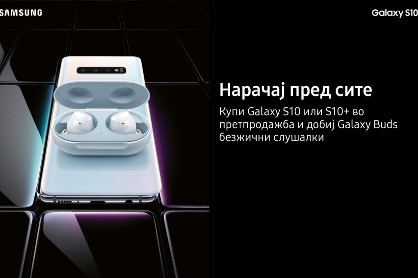 Во исто време со новите смартфони, на пазарот пристигнуваат и безжичните слушалки Samsung Galaxy Buds, кои Телеком ќе ги подари на сите корисници кои ќе купат Samsung Galaxy S10 или Samsung Galaxy S10+ во претпродажба.