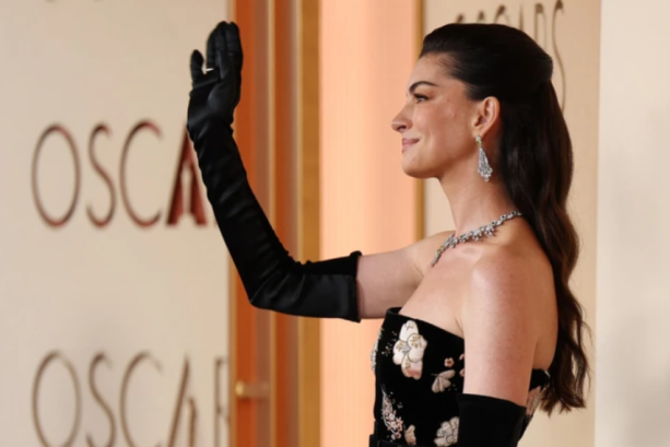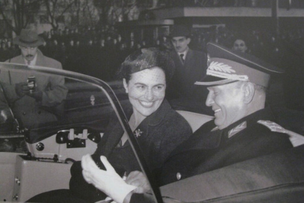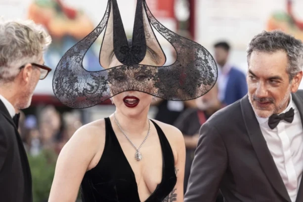 Трендовката фризура и црвениот кармин на кој беше ставен акцентот неверојатно се вклопуваа во нејзиниот изглед.