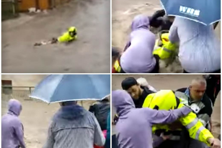 Погледнете ја снимката од драматичното спасување на пожарникарот.