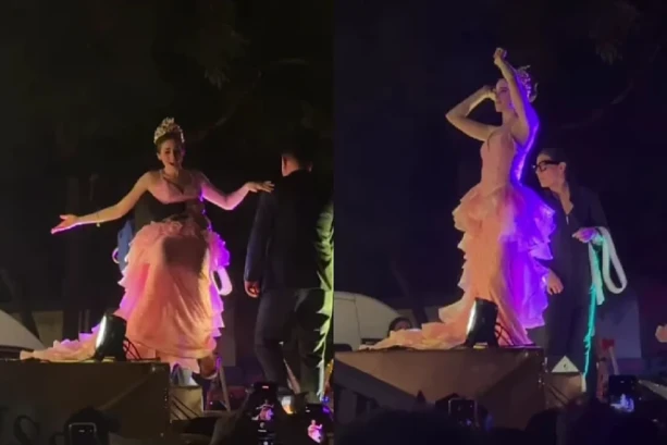 Таа носела модна комбинација од нејзиниот бренд, но изборот на бои бил дискутабилен.