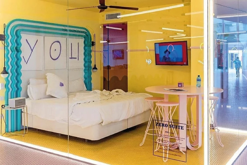 Апартманот наречен „Zero Suite“ во „Paradiso Ibiza Art Hotel“, според зборовите на управата не е „наменет за оние кои се срамежливи“, бидејќи станува збор за соба затворена со стаклени ѕидови. Исто така, се наоѓа во предворјето на хотелот што значи дека веројатно ќе бидете сведоци на голем метеж додека се обидувате да заспиете.