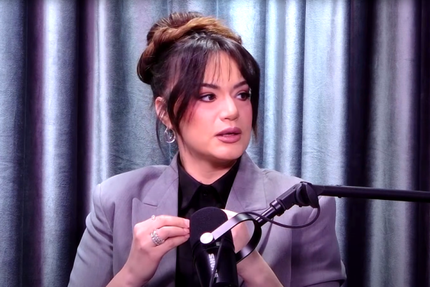 Освен градник, актерката носи и панталони кои ја нагласуваат нејзината тенка половина.