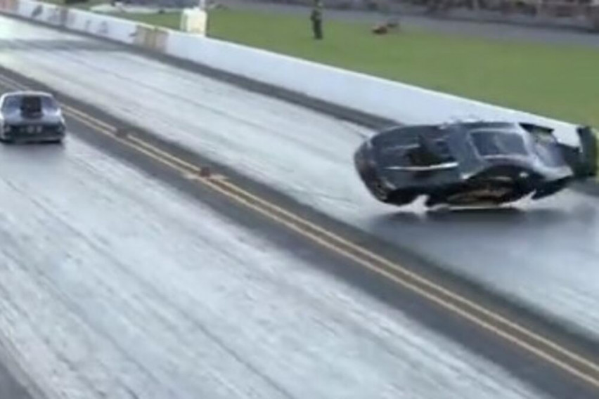Камерите го снимиле ужасниот момент кога професионален возач на драг трки загинал, откако неговиот автомобил ги пробил безбедносните бариери и удрил во кулата со камери со 320 километри на час.