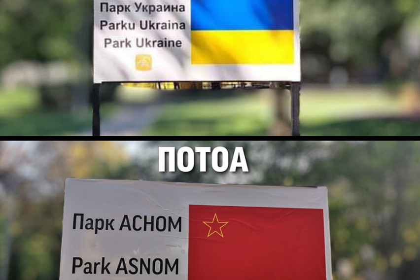 „Денес, Црвената младина се погрижи да ја поправи намерната или ненамерна грешка и некогашниот парк на народните херои, кој беше именуван Украина, го преименуваме во АСНОМ.