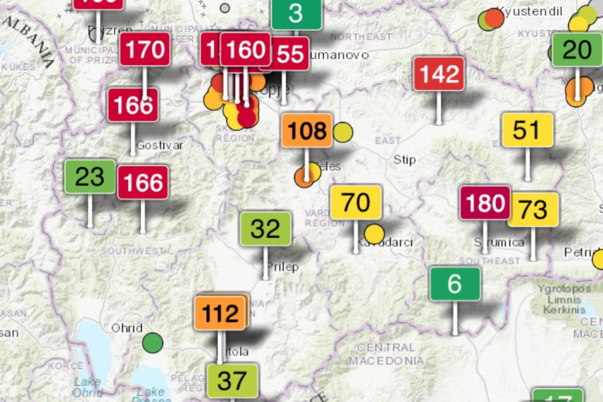 Како што соопштуваат од Град Скопје, според истиот систем, најзагадени градови во Македонија, а со тоа и во топ 10 загадени во Европа се Струмица и Тетово, како и општините Гази Баба и Ѓорче Петров.