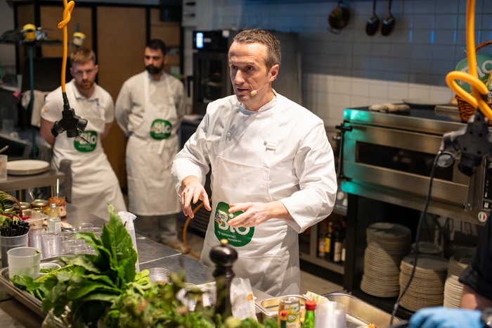 Додека Симона Коруновска, апелирајќи до младите генерации да се информираат и направат храбри избори велејќи им дека органското јадење значи и свесност. Храната без пестициди и адитиви е чекор кон тело кое функционира подобро и ум што мисли појасно. По завршувањето на дискусијата, присутните имаа можност да гледаат и готвење во живо каде што тимот на FJ Culinary School подготви три креативни рецепти инспирирани од dmBio производите: Посни сендвичи со плескавица, крцкави њоки во сос од домати, веган сутлијаш со пудинг од ванила и џем од јагоди.