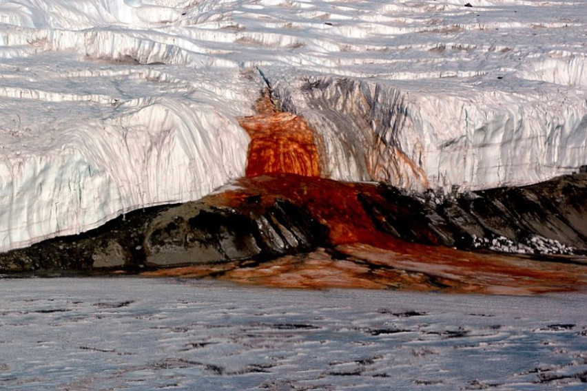 Овој феномен, познат како „крвав водопад“, (Blood Falls) е уште пофасцинантен отколку што изгледа. Неговата интензивна боја не се должи само на железниот оксид, туку доаѓа и од ситни микроорганизми богати со железо, кои ги создаваат бактериите.