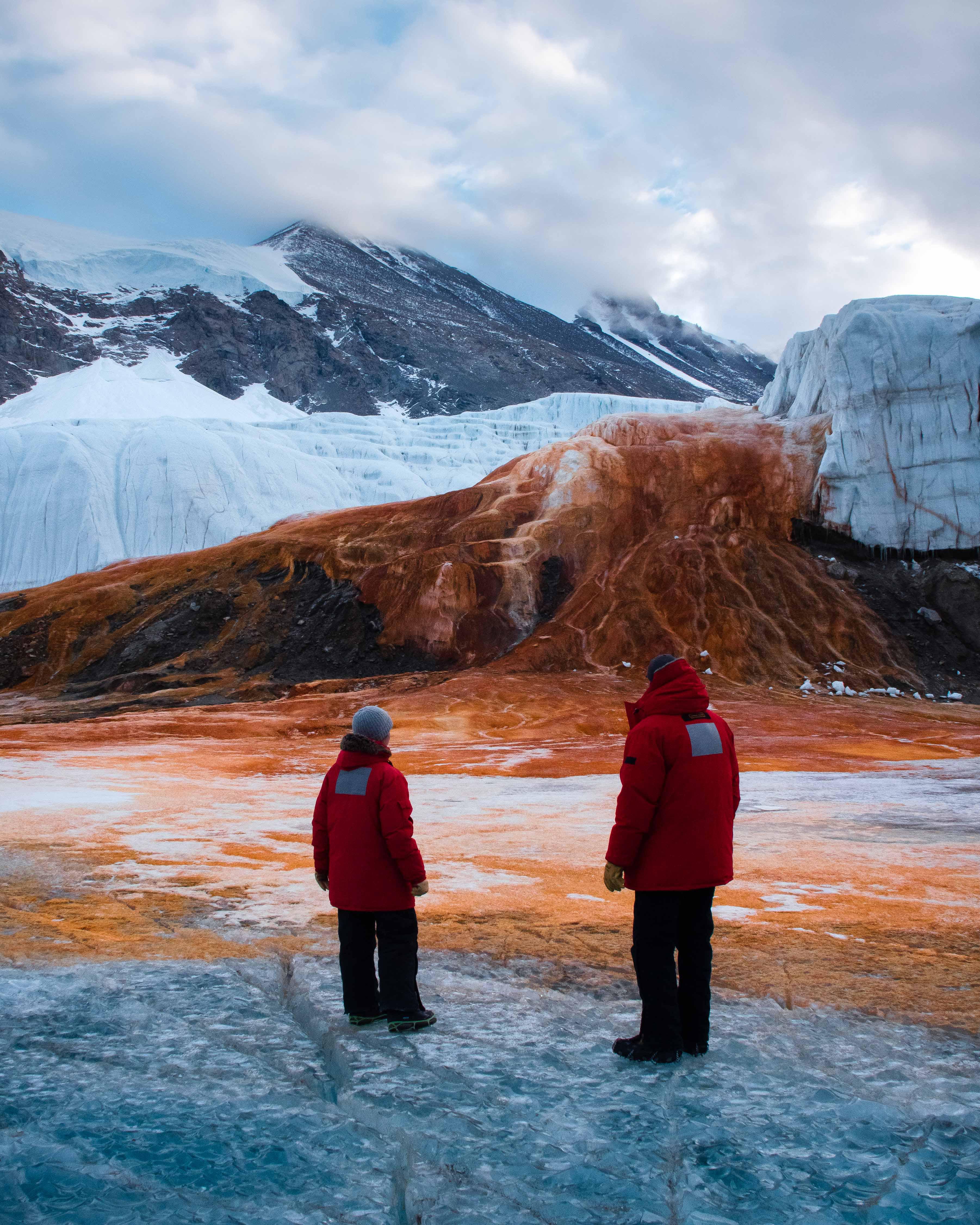 Овие микроорганизми живеат во соленото езеро скриено под глечерот. Кога оваа вода ќе дојде до површината и ќе наиде на кислород, таа добива толку интензивна црвена нијанса што изгледа нереално во пејзажот на Антарктикот, па изгледа како мразот да крвави.