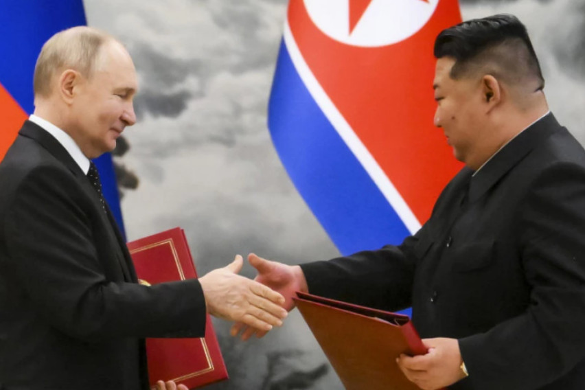 Северна Кореја официјално не потврди до крајот на април дека испратила повеќе од 10.000 војници и оружје во Русија, додека воените врски на двете земји растат според Договорот за сеопфатно стратешко партнерство, што Ким и рускиот претседател Владимир Путин го потпишаа минатата година.