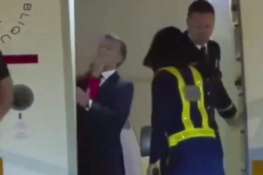 Видеото, снимено од бројни меѓународни новински агенции, го прикажува моментот кога вратата на претседателскиот авион се отвора во недела навечер, а раката на првата дама се гледа како го турка лицето на претседателот, пренесуваат светските медиуми.