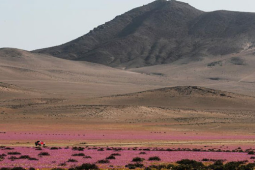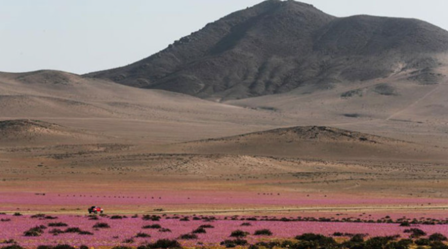 Песочните дини во чилеанската Атакама повторно се облеани со живописни бои, откако последниве недели во најсувата пустина на светот процвета цвеќе.