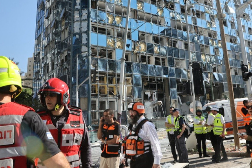 Паралелно со овој напад, ракета погоди и облакодер во Рамат Ган, недалеку од центарот на Тел Авив, каде што, според сведоците, експлозијата уништи локална пицерија и ги искрши прозорците на десетици околни згради.
