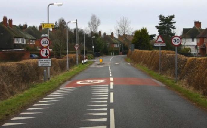 Белите триаголници се исцртани од внатрешната страна на линиите што ја означуваат границата на сообраќајната лента. Поради формата потсетуваат на заби, а создаваат впечаток дека патот се стеснува – што ги тера возачите да возат повнимателно.