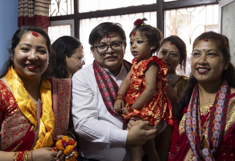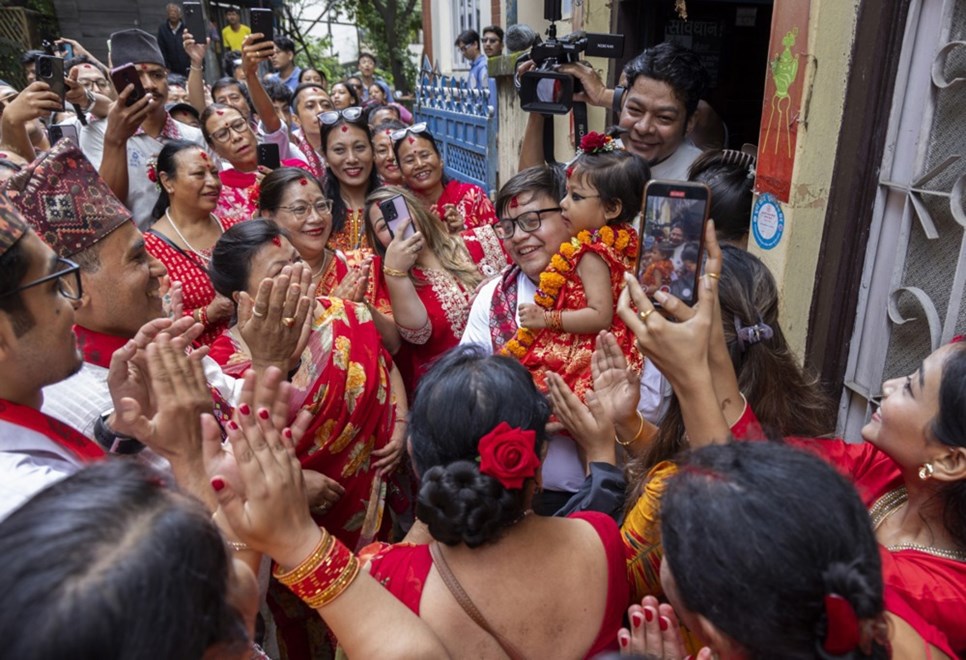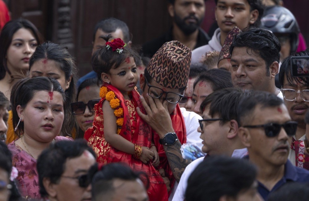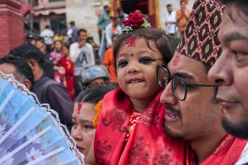Двегодишно девојче е избрано за нова „жива божица“ во Непал, а членовите на нејзиното семејство во вторник ја однеле од нејзиниот дом до храмовата палата за време на најважниот хиндуистички фестивал во земјата.