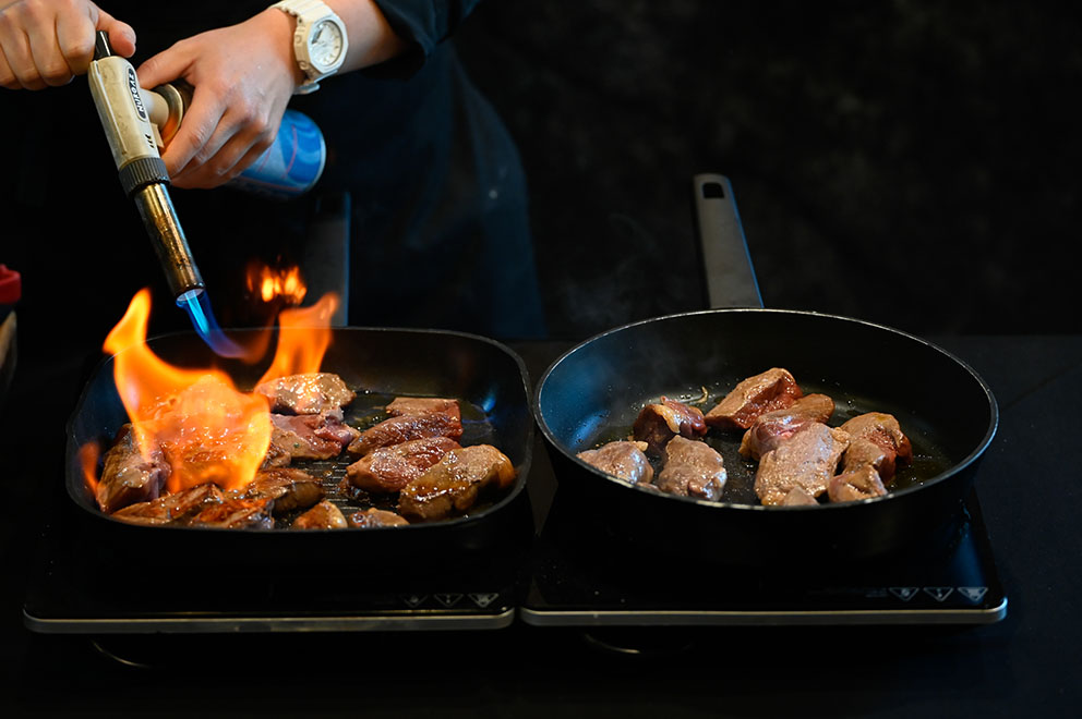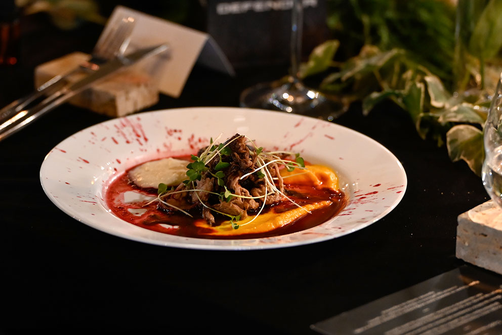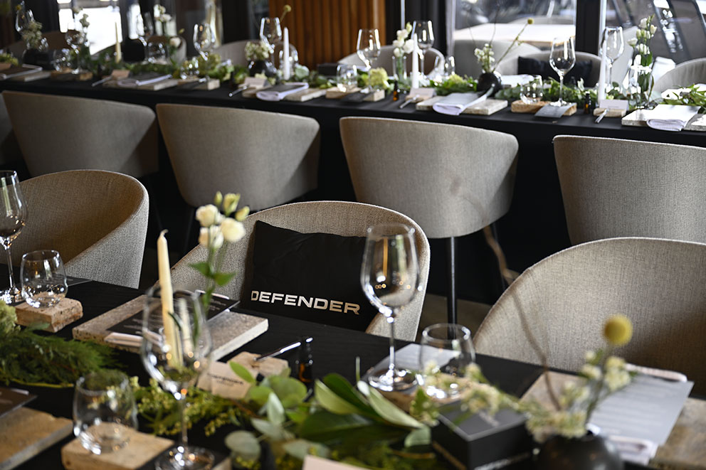 По целодневните активности, вљубениците во Defender, се препуштија на вистинско гастрономско патување, создадено од шеф Александра Атанасовска – нашата „Alex Pucci“. Мајсторка на фината кујна со богато искуство во ресторани со Мишелин ѕвезди, создаде амбиент на врвен ресторан во планинска куќа. Со автентични вкусови од исклучиво локални и сезонски состојки, внимателно одбрани зачини и свежи билки од нејзината градина, виртуозно креираше кулинарско искуство дизајнирано да ги рефлектира вредностите на Defender: модерен луксуз, мајсторство, истражување, авантура и радост во живеењето. Талентираниот саксофонист и музички автор Горан Папас ја надополнуваше Александра во нејзината уметничка приказна, исполнувајќи ја атмосферата со возвишена емоција со еден од најемотивните инструменти.