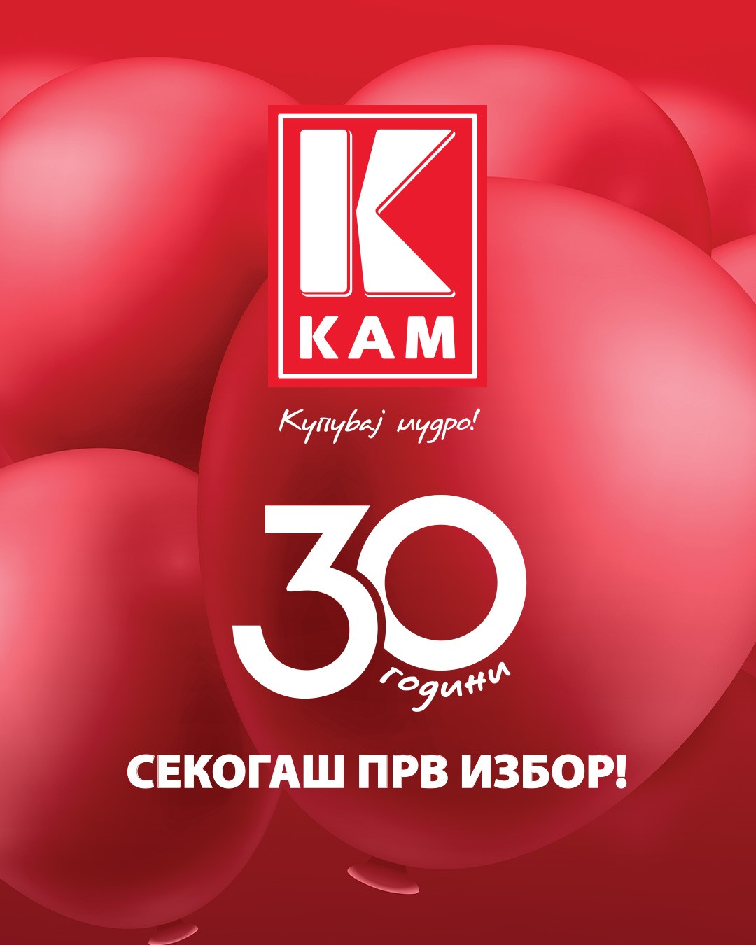 КАМ, македонскиот број еден, годинава одбележува три децении јубилеј и влегува во ново поглавје од својата успешна македонска приказна заснована на квалитет и доверба. Пионер во многу сегменти во полето на малопродажбата, компанијата е позната по грижата за секој потрошувач и по тоа што ги донесе ниските цени на пазарот.