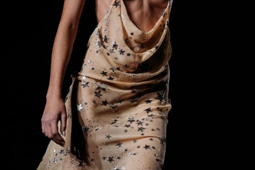 Дури и самиот поглед на овој необичен модел предизвикува болка. Кога манекенката излегла на пистата, многумина се заледиле – не затоа што била гола (тоа сме го виделе безброј пати), ниту поради проѕирната креација украсена со сребрени ѕвезди, туку затоа што горниот дел, наместо да има прерамки, бил прицврстен со алки провлечени низ – брадавиците.