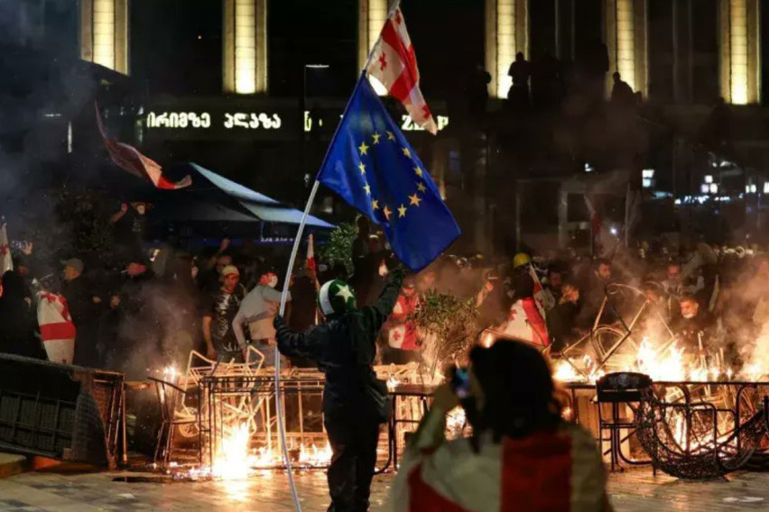 Грузискиот премиер Иракли Кобахизе изјави дека демонстрантите кои се обидоа насилно да влезат во претседателската палата всушност се обидуваат да ја соборат владата и ја обвини Европската Унија за мешање во грузиската политика.