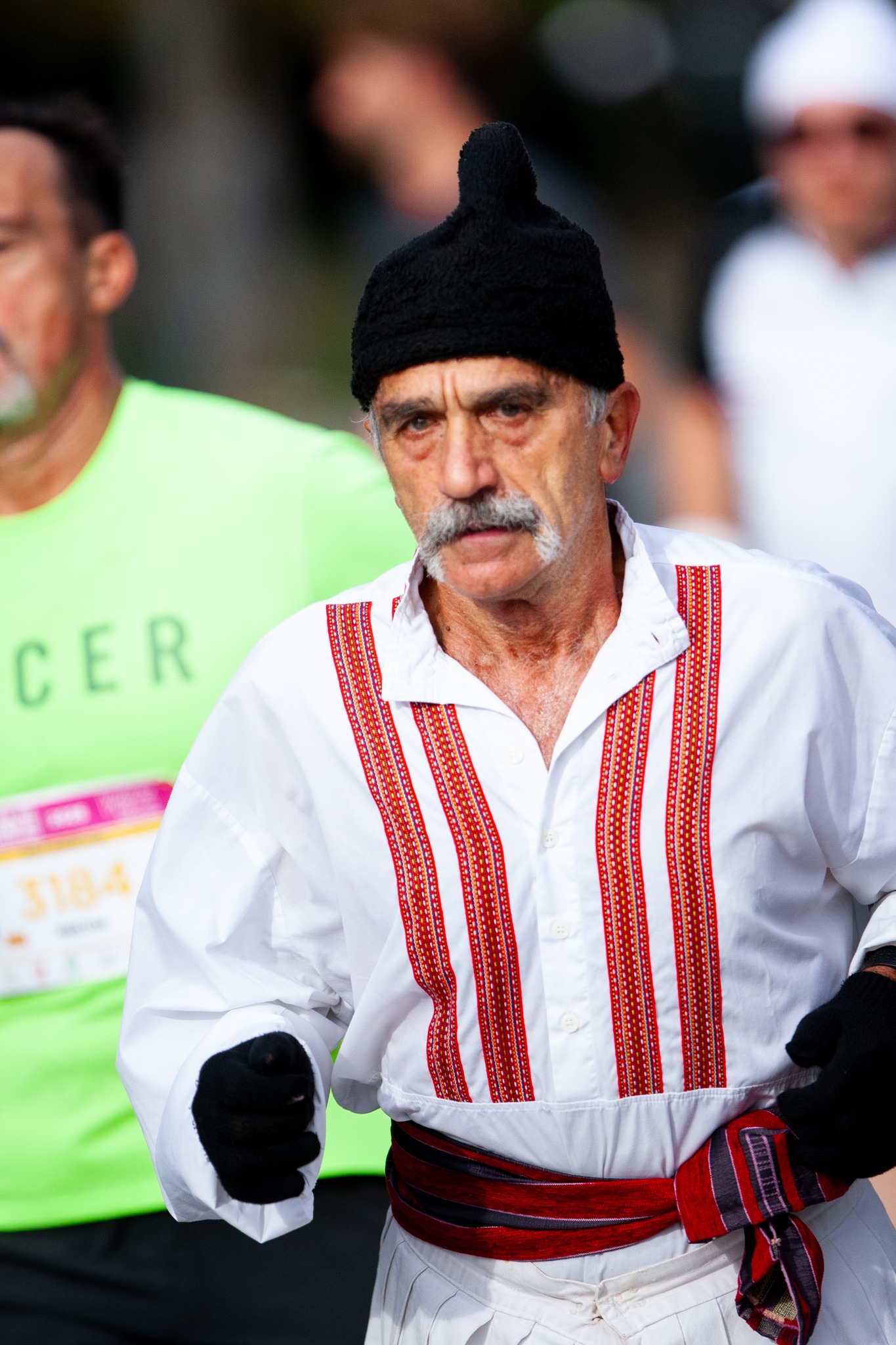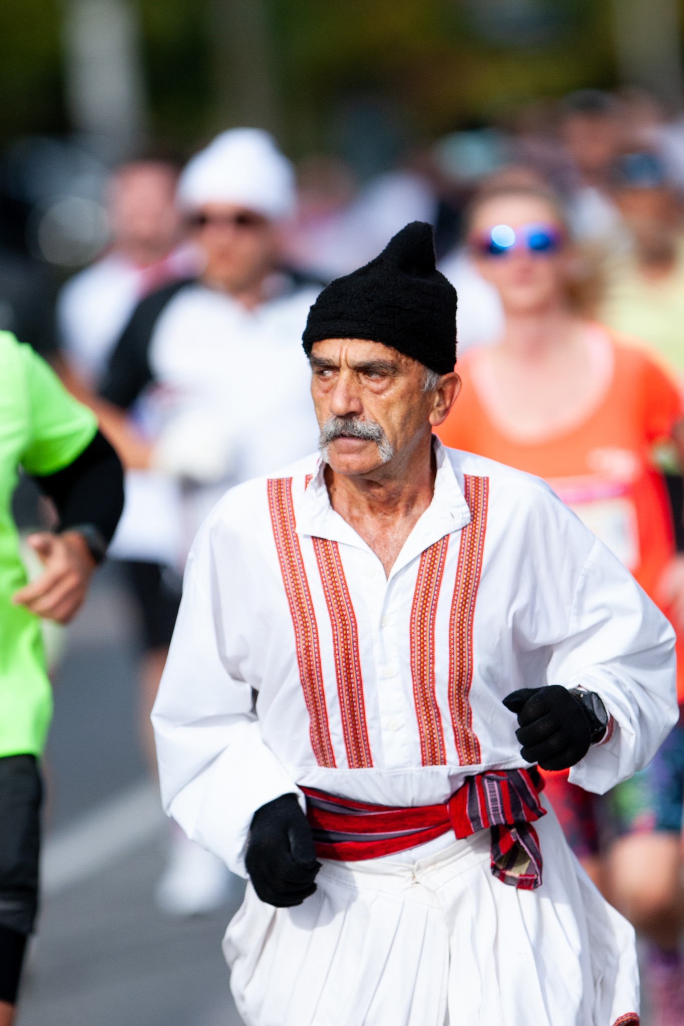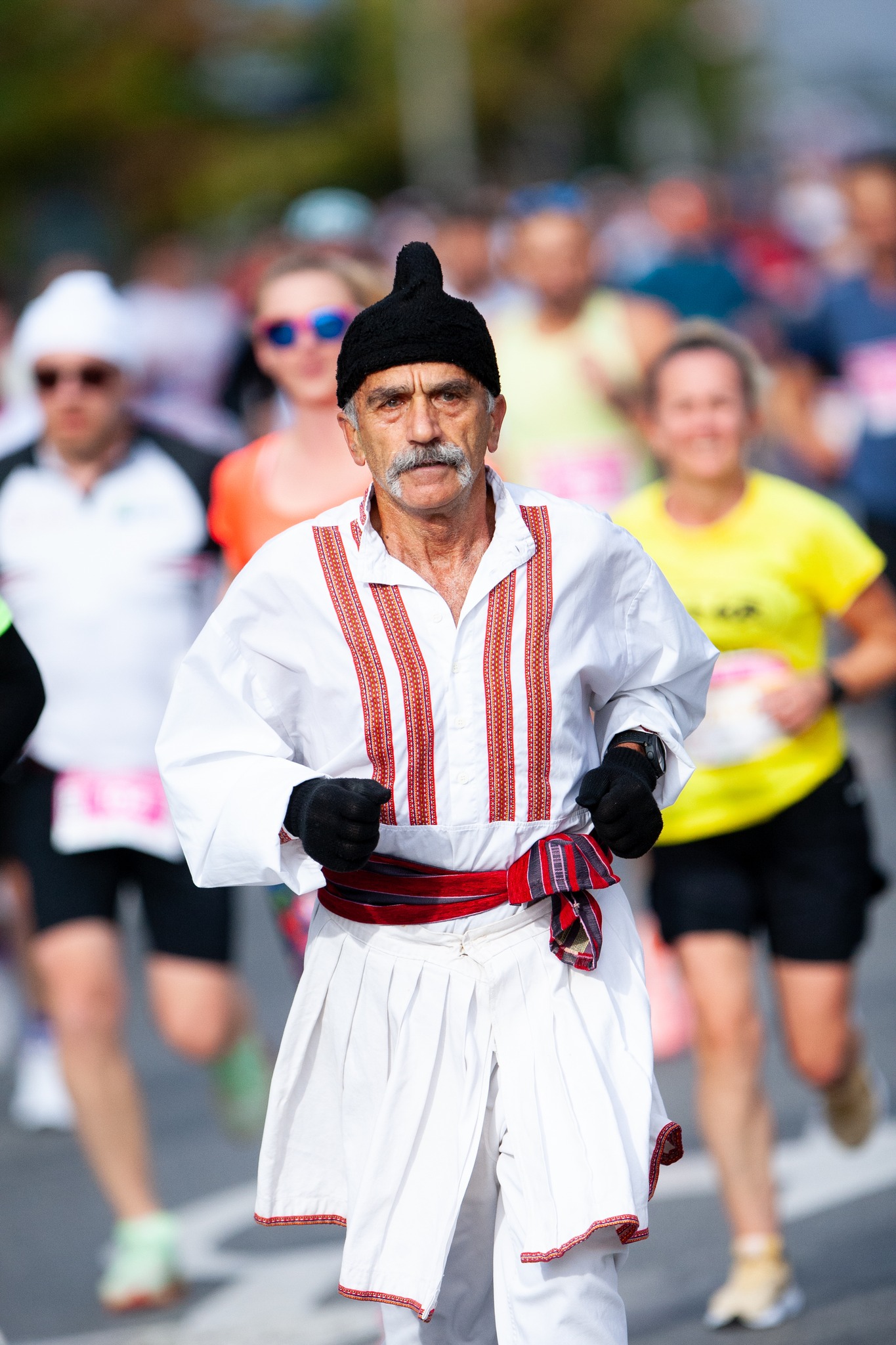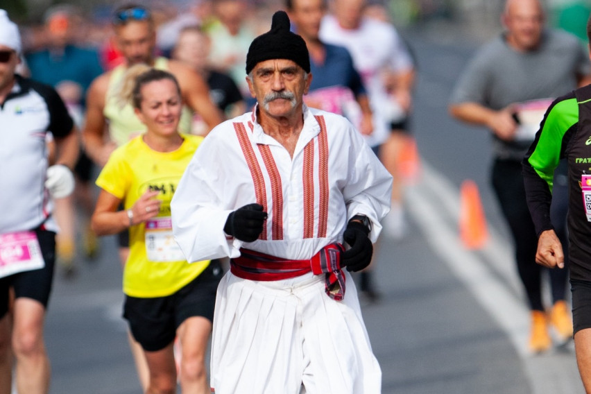 На Скопскиот маратон имаше многу интересни моменти, а најголемо внимание убедливо привлече човекот кој трчаше на маратонот во македонска народна носија.