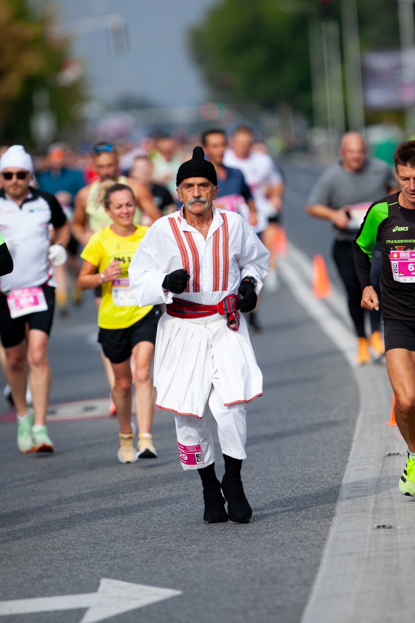 Станува збор за скопјанецот Благоја Ацковски (72) познат како Бале Брзи кој истрча 42 километри, а фотографии од него сподели фотографот Горан Атанасовски кој напиша: