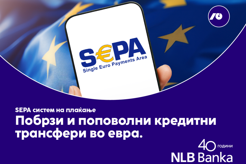 Од утре (7 октомври), НЛБ Банка официјално започнува со плаќања преку СЕПА - Единствениот европски платен простор, овозможувајќи им на своите клиенти, физички и правни лица, побрзи меѓународни трансфери во евра со сите земји членки на СЕПА, со значајно пониски надоместоци.