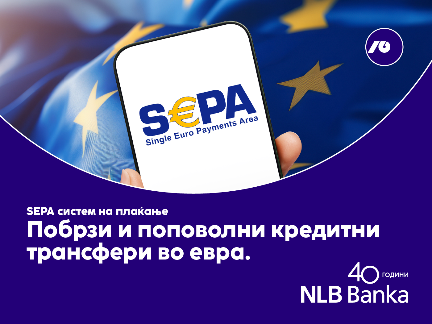 Откако кон крајот на мај годинава, НЛБ Банка ја достави апликацијата до Европскиот платен совет за членство во СЕПА (SEPA - Single Euro Payments Area), со што стана и првата банка во Република С. Македонија која го започна процесот на интеграција во системот, веќе од утре, клиентите на НЛБ Банка ќе можат да вршат и примаат плаќања во евра во над 40 земји-членки на СЕПА, со истата леснотија и ефикасност како и домашните трансфери.