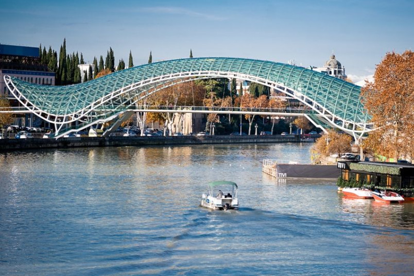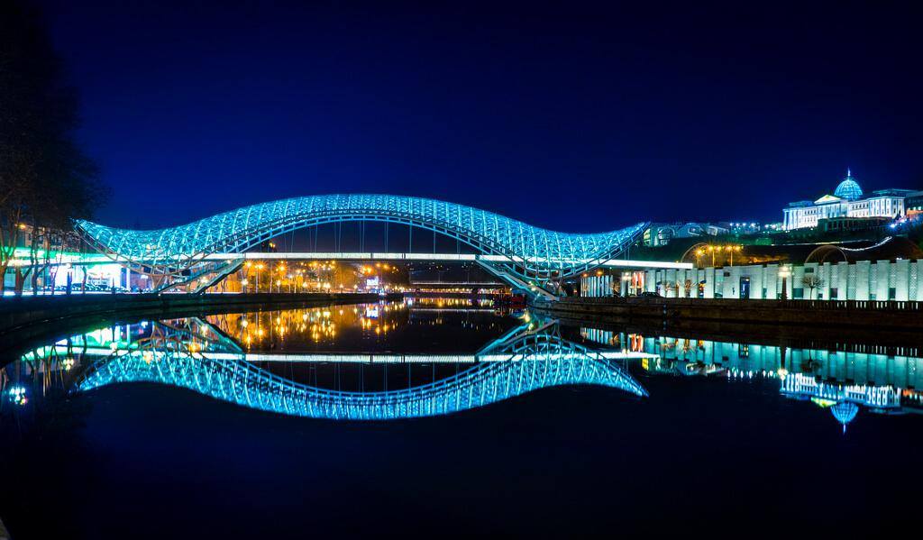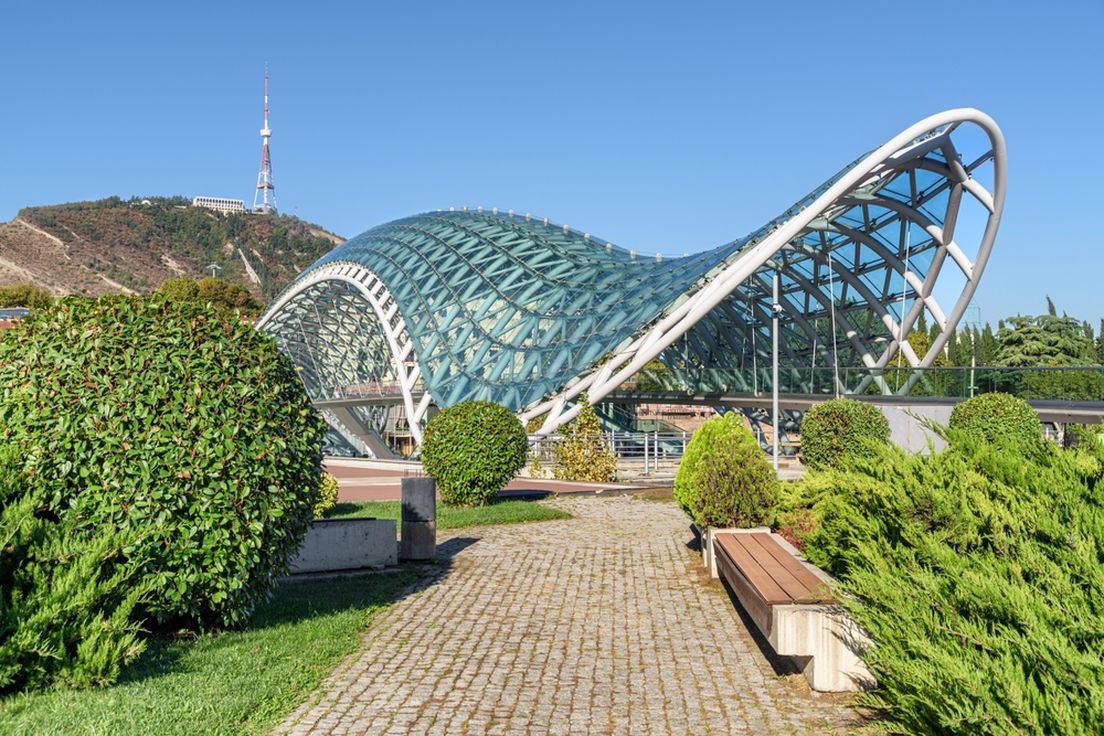 Мостот на мирот, пешачки мост во облик на лак, изработен од челик и стакло и осветлен со бројни LED светилки, се протега преку реката Кура и го поврзува паркот Рике со историското градско јадро во центарот на Тбилиси.