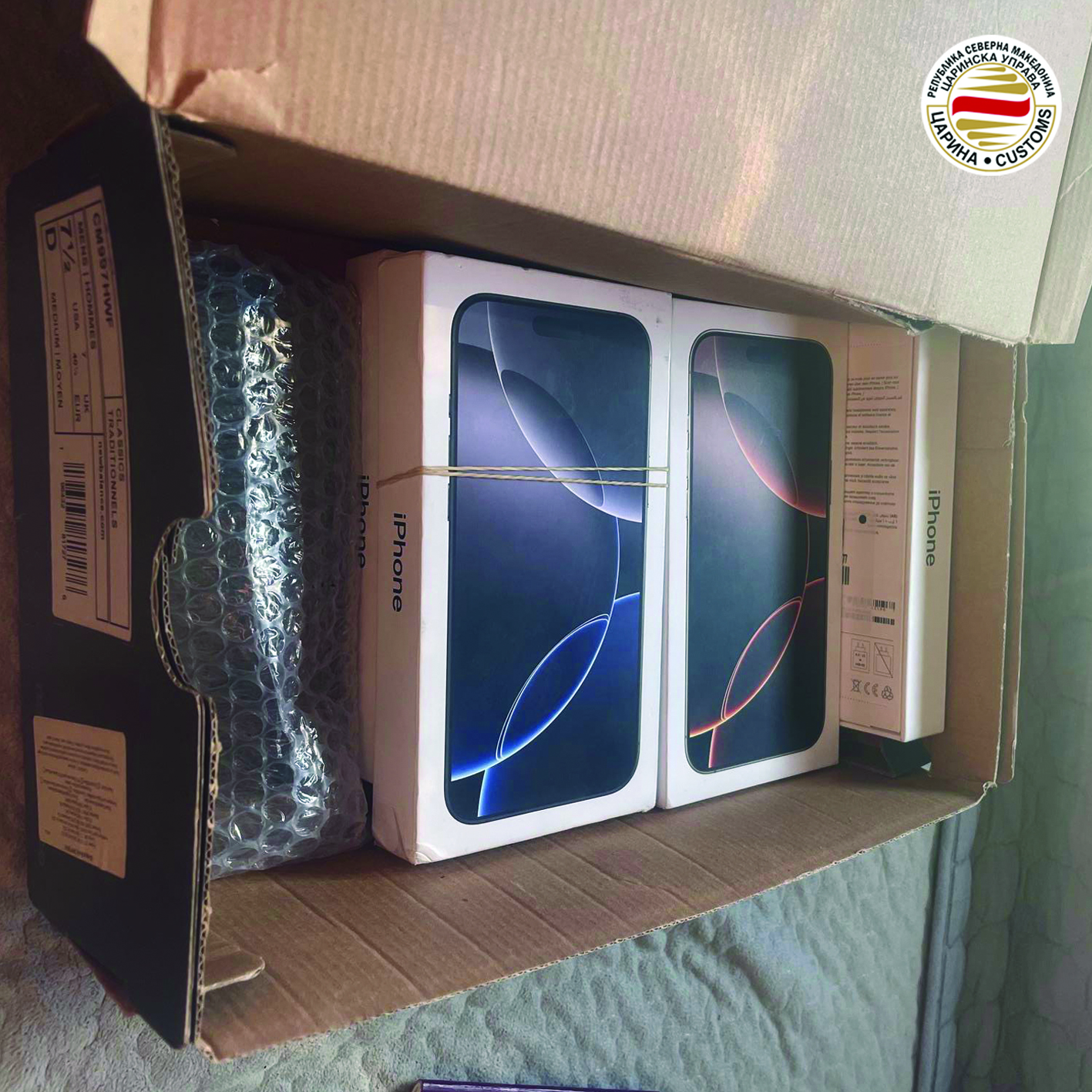 [ФОТО] Царинска управа: Поднесена кривична пријава против две лица за криумчарење мобилни телефони „Ајфон“, случајот откриен на Ново Село