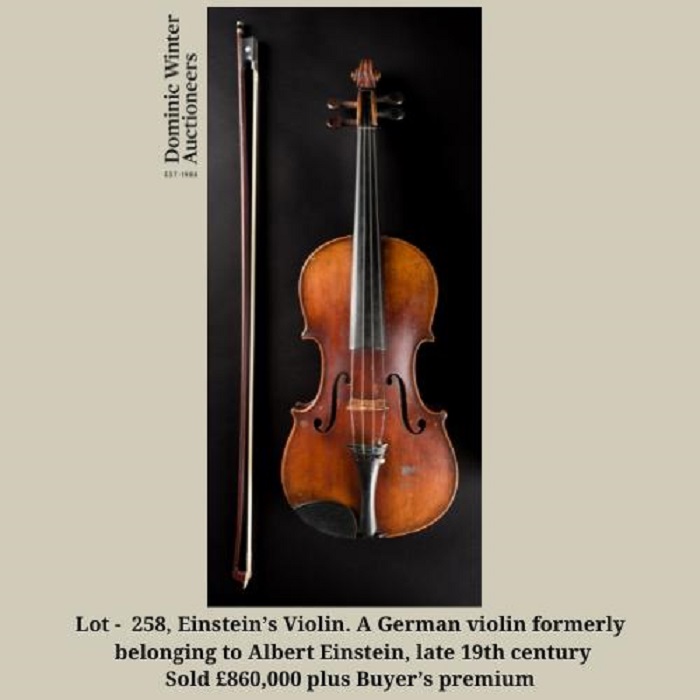 Виолина што некогаш му припаѓала на еден од најпознатите научници во историјата, Алберт Ајнштајн, е продадена за 860.000 фунти на аукција, пренесува Би-би-си.