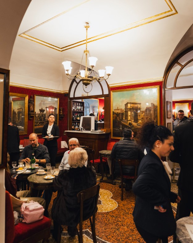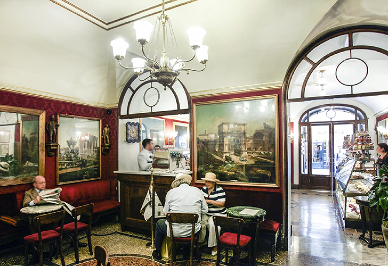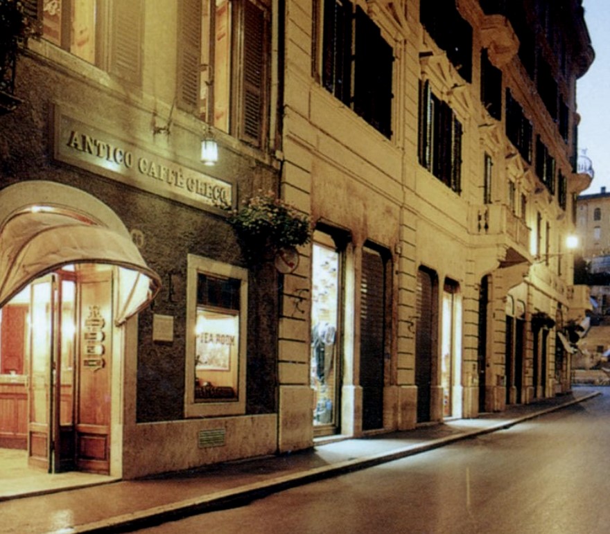 Сместено на неколку чекори од Шпанските Скали, „Антико Кафе Греко“ на улицата Кондоти, откако е отворено во 1760 година од страна на левантинецот Никола дела Мадалена, станал интелектуална икона на Рим, посетуван од цела низа писатели, сликари, кралеви, прелати, учени жени, жигола, новинари, авантуристи, политичари, а исто така било и омилено место за дружење на идниот папа Лав XIII. Само венецијанското „Кафе Флоријан“, основано во 1720 година, е постаро од него.