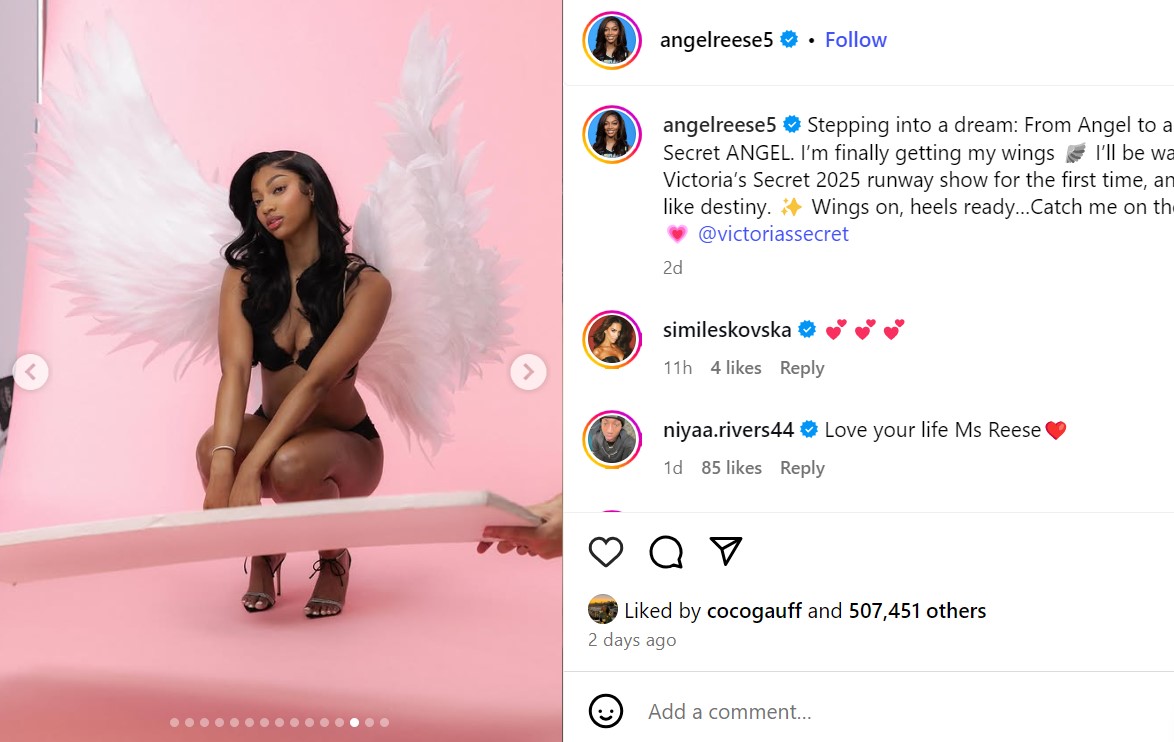 „Ова е легендарно“, „Продолжи да кршиш бариери“, „Не „Ангелот си ги доби крилјата“, беа дел од коментарите на Инстаграм.