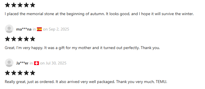 Коментарите и оцените на овие производи укажуваат на едно – постојат луѓе кои навистина направиле сериозна нарачка и преку „Temu“ купиле надгробни плочи и фотографии посветени на своите починати најблиски.