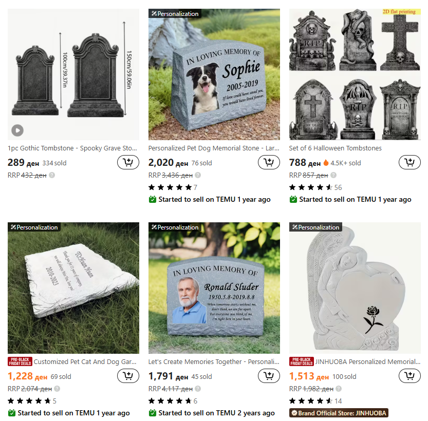 Во понудата на онлајн трговската платформа „Temu“ се појавија и плочи за надгробни споменици, што предизвика поделени реакции меѓу потрошувачите.