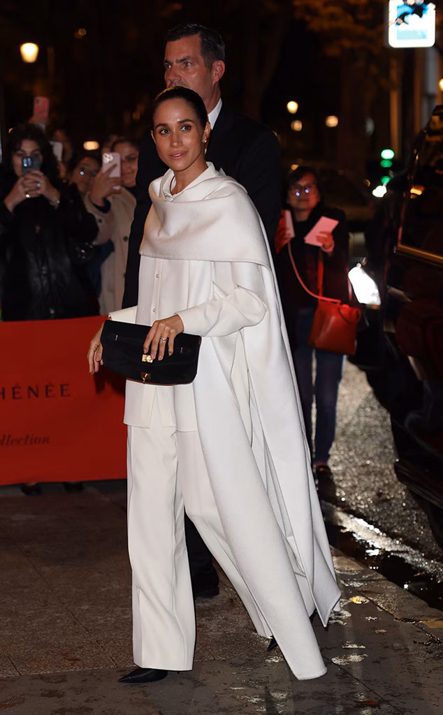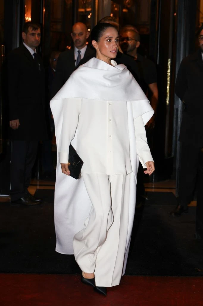 Меган, која пристигнала во бел, широк комплет со долг шал, направила сè за да остави впечаток. Целта била повторно да стане главна тема на социјалните мрежи, во што и успеала. Но, речиси веднаш, таа се нашла на удар на критичарите.