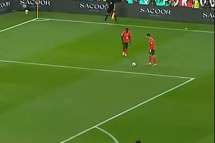 Во првото полувреме при негатива од 0:1, Роналдо и Нуно Мендеш некое време се договараа како ќе го изведат слободниот удар, за на крајот да режираат сцена која е несвојствена за највисоко ниво.