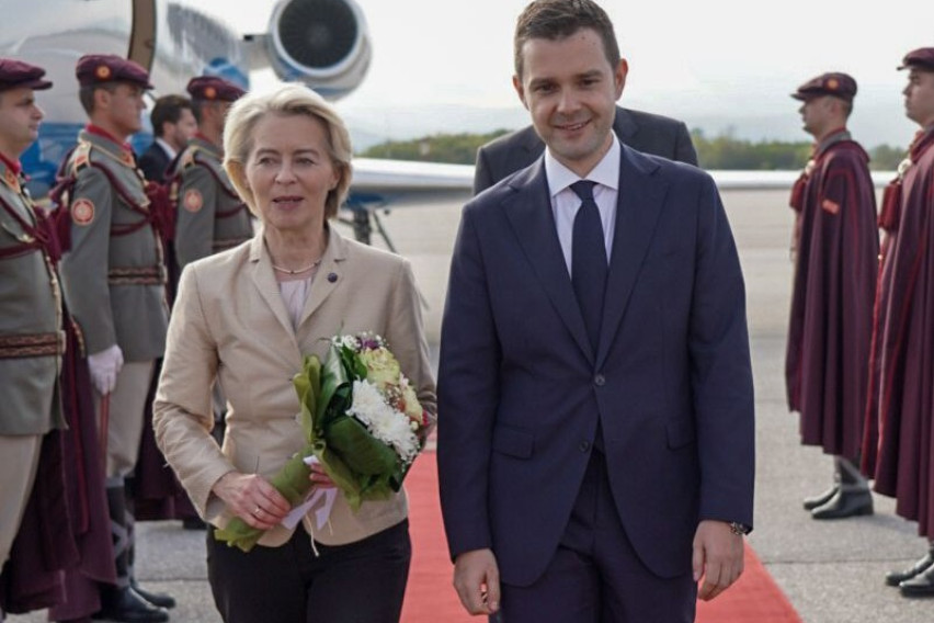 Претседателката на Европската комисија, Урсула фон дер Лајен, попладнево слета во Скопје. Министерот за надворешни работи и трговија, Тимчо Муцунски, рече дека на денешните средби очекува да се потврди поддршката за европската интеграција на Западен Балкан.