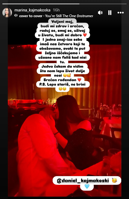 Марина, преку објава на социјалните мрежи, му посвети топла и емотивна честитка на својот сопруг, споделувајќи дел од нивната љубовна приказна што ретко се гледа јавно: