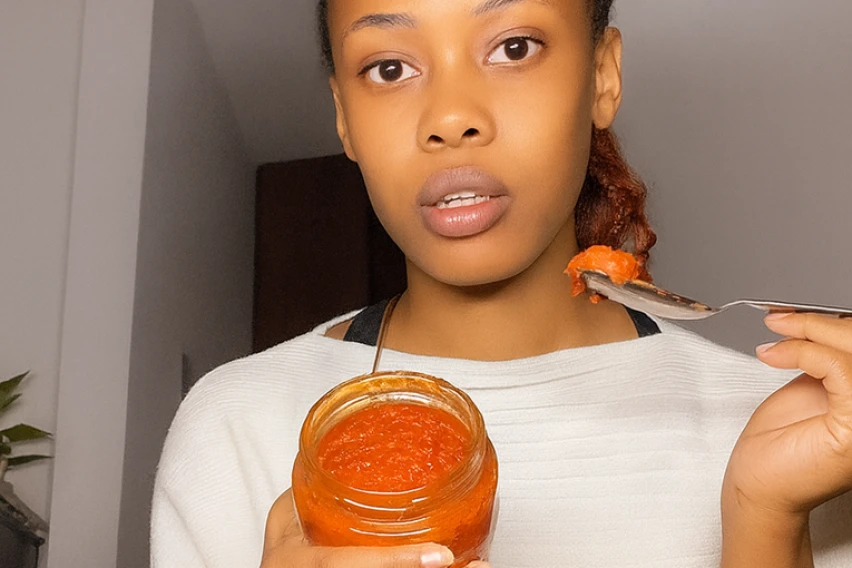Таа не можела да го скрие воодушевувањето, па во видеото детално го коментирала секој залак, откривајќи дека изела речиси половина тегла за само пет минути – и тоа без леб.