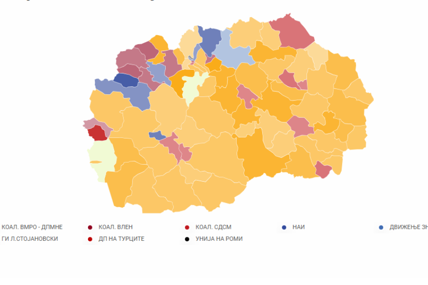 ВМРО-ДПМНЕ доби 32 градоначалници во прв круг, Влен зад нив со победа во пет општини