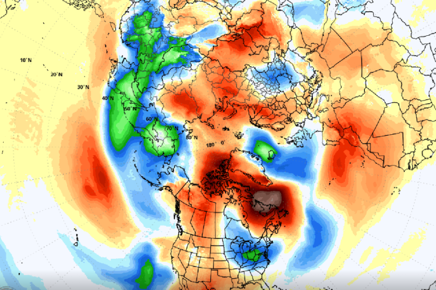 Температурните аномалии покажуваат студени услови во источниот дел на САД и деловите на Европа, додека пак западните делови од Канада ќе останат под влијание на потопол воздух поради составот на високиот притисок.
