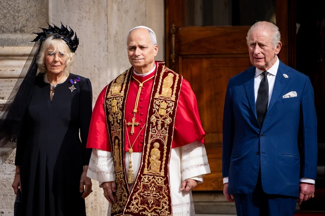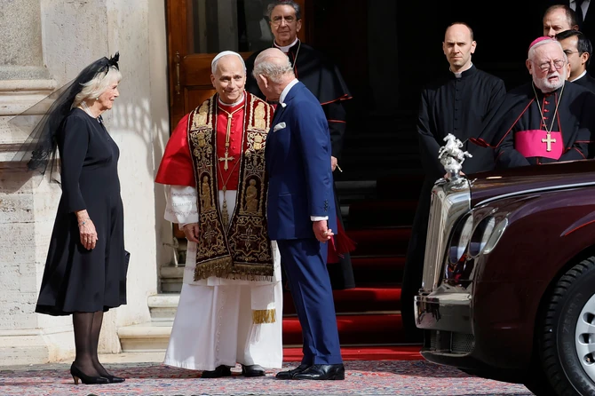 Во кратка државна посета на Светата столица престојува и кралицата Камила, која за оваа посебна церемонија избра едноставна тоалета, со целосно почитување на протоколот.