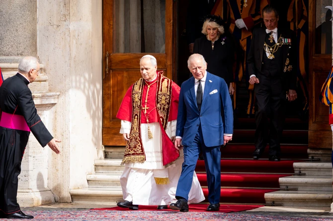 Историска средба во Ватикан... По речиси половина милениум, колку што трае расколот меѓу Англиканската и Римокатоличката црква, во Систинската капела се одржа заедничка богослужба на која присуствуваа британскиот крал Чарлс и папата Лав.