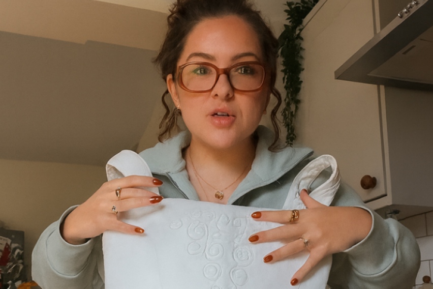 „Нарачав венчаница од ’Vinted‘ за 14 фунти. Дали да ја погледнеме?“, праша таа во видеото, објаснувајќи дека сакала да види какви половни венчаници се нудат на пазарот – и веднаш останала без зборови.